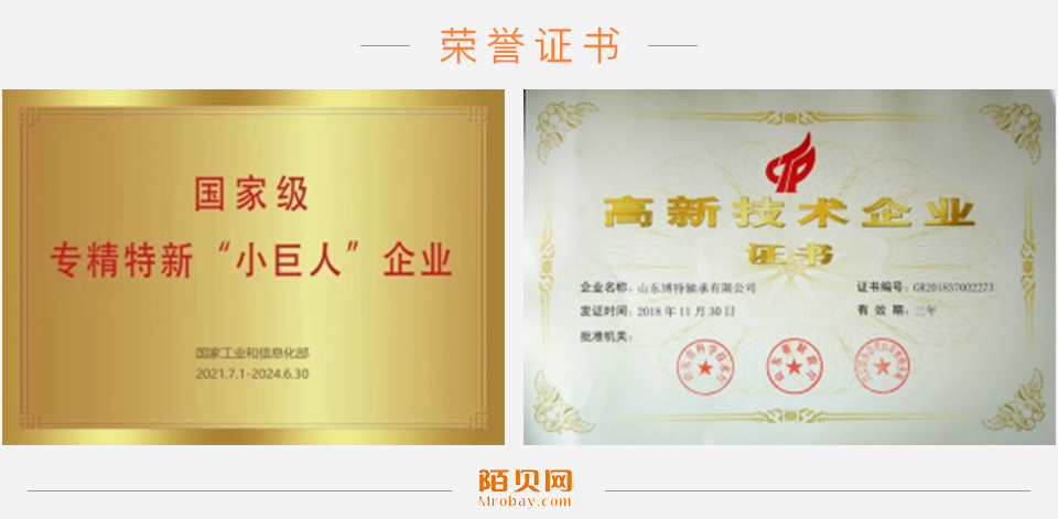 山東博特軸承有限公司成立于2004年,注冊資金1200萬元。是一家集研發(fā)設計、生產、銷售于一體的民營企業(yè),是國家級專精特新小巨人企業(yè),國家級高新技術企業(yè),山東省專精特新企業(yè),山東省制造業(yè)單項冠軍企業(yè),山東省名牌產品,山東省著名商標公司企業(yè)技術中心,是省級企業(yè)技術中心,公司還是聊城市薄壁特種軸承研發(fā)工程技術研究中心、聊城市薄壁特種軸承重點實驗室依托單位。